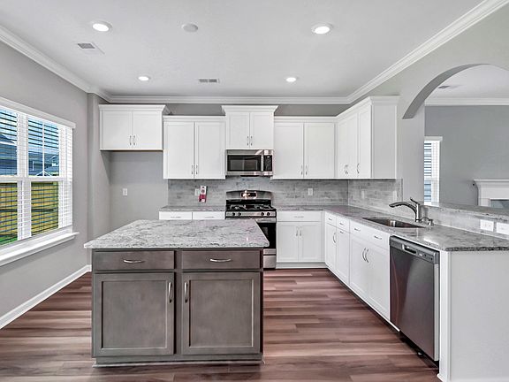 This Langford is a two-story home with four bedrooms and two and one-half bathrooms. The foyer opens to the large family room and arched openings leads to the kitchen and dining area. The kitchen features stunning white cabinetry, marbled quartz countertops, tile backsplash and great sizable pantry! Adjacent to the kitchen and eat-in area is the relaxing sunroom with a 12x10 foot patio located just outside the back door. An office/flex room on the main floor gives you flexibility for work and play spaces and located near your powder bath. Three upstairs secondary bedrooms all feature large closets and room for everyone. The primary suite gives you the oasis your are searching for with it's quaint sitting room tucked away, large walk-in closet and a primary bath giving you a separate tub and shower, water closet and linen closet.