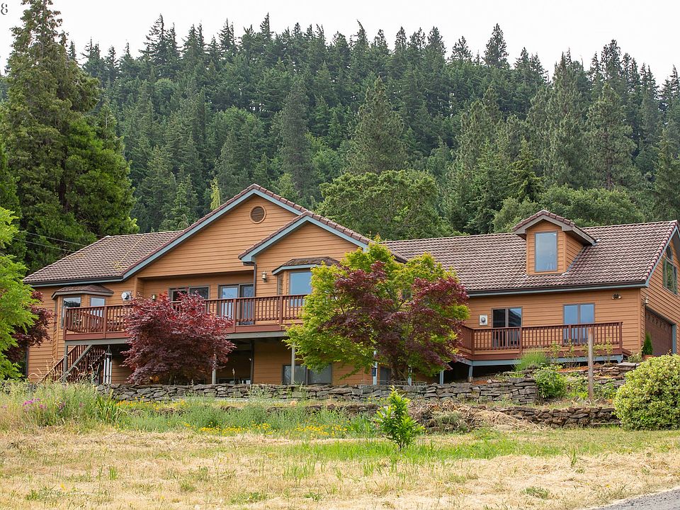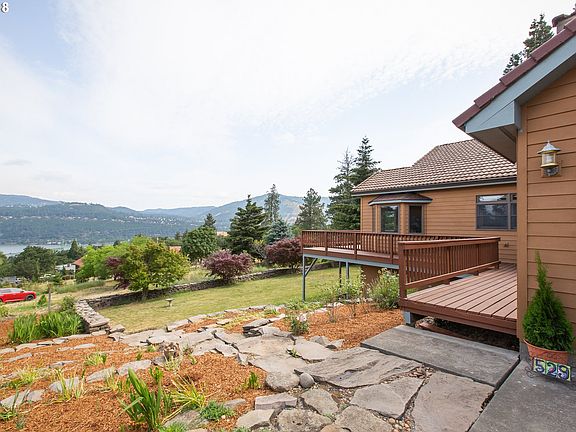 Stunning home with spectacular River & Bridge views!Private path to trailhead and nature. Everything you need is on the main level in this 4 bed/3.5, 4886 sq ft. custom home. Formal Granite entry, refinished Maple floors, vaulted fir ceiling, newer garage doors, 2 sided gas fireplace & security system. Master with ensuite bath. Bonus room upstairs could be bedroom. Lower level has bedroom w/ full bath & kitchenette.Extra space on this one acre parcel to build a shop or park an RV or boat.