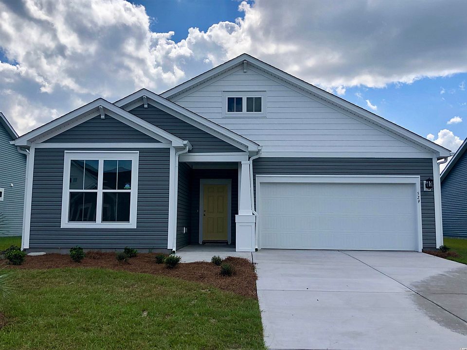 The Georgetown house plan featuring 1-story living with 3 bedrooms, 2 bathrooms, a 2-car garage space. A spacious foyer welcomes and invites guests into your home. Entertain guests while preparing gourmet meals in an open-concept kitchen and great room. Your luxury kitchen features granite countertop, stainless steel gas range, dishwasher, microwave (vented to the outside) all included options in Sunset Landing. Price also includes Mohawk ReVWood plank flooring, carpet in bedrooms and beautiful vinyl flooring in all bathrooms. All Homes in Sunset Landing feature a tankless water heater. Pictures are from our current Sunset Landing Model Home. All homes in Sunset Landing are 100% Energy Star Certified, tested and rated by an independent 3rd party resulting in more comfort and lower cost of utility bills! Surrounded by a perimeter of tree-line, Sunset Landing is a natural gas community showcasing a brand new series of single family homes. A small, intimate neighborhood consisting of only 193 homes, residents will have access to an on-site clubhouse, pool, sidewalks, and weekly trash and bi-weekly recycle collection. Sunset Landing is located less than 1 mile to Highway 31, providing quick and convenient access to navigate the entire coastline. Located within the fishing and boating town of Little River, South Carolina, this area is outside of the hustle and bustle of Myrtle Beach! A laid back atmosphere with waterfront dining, boutique-style shopping, numerous marinas and championship golf courses are all within minutes from Sunset Landing! Come explore today! All pictures shown are from our previous Model Home