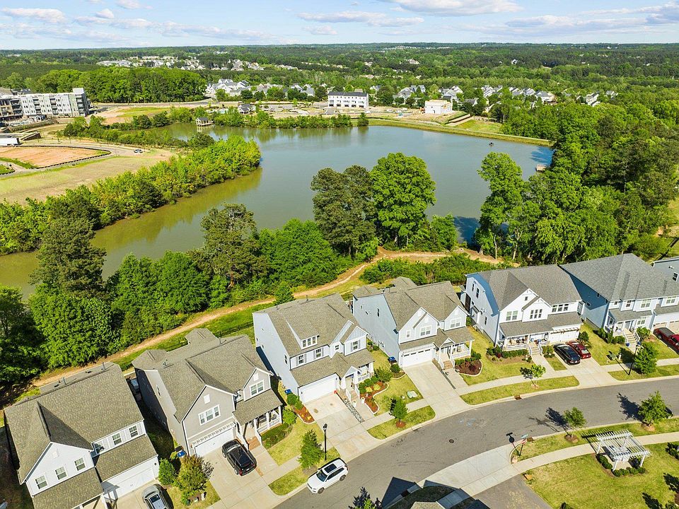 Better than new home with lake views and private backyard in Holding Village! Front Covered porch, lots of natural light, mudroom/dropzone station. Gorgeous hardwood floors thru-out main living areas! 10' ceilings on the first floor. Gas fire place, Private 1st floor office/guest room. gourmet kitchen with SS appliances, quartz countertops, oversized kitchen island, microwave/wall oven combo ,gas cooktop and walk-in pantry! Soft close shaker style cabinets to the ceiling! Spacious breakfast area opens to sunroom with lake view. Large deck overlooking the backyard and beautiful lake view. The 2nd level includes the master bedroom with en suite bath and spacious WIC with custom shelves, 3 add’ll bedrooms with Walk in closets , 2 guest baths & a spacious loft for movie/game night. 9' celings on the second floor, Unfinished storage space. Wooded fenced yard with access to natural trails.