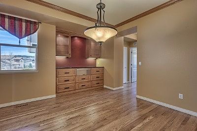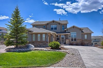 This MUST SEE immaculate 6 BED/4 BATH/3 CAR home sits on a 19,589 sq ft lot with endless upgrades! High ceilings accent the main level which also features hardwood floors, a bright front office and separate dining room w/warming oven. Relax by the gas fireplace in the formal living room w/granite accents. You also don't want to miss the amazing views of Pikes Peak from the spacious kitchen/living room featuring SS appliances, granite countertops, a large pantry, gas stovetop, microwave/oven combo. The master suite finishes out the main level with an amazing 5 piece bath, his/her sinks, walk-in closets and upgraded tile with custom inlays. 2 add'l large bedrooms can be found on the 2nd level sharing a jack and jill bathroom. The lower level boasts a wet bar with beverage center/mini refrigerator, granite counters tops, 3 large bedrooms, 1 full-bath and a family home theater, Klipsch speakers included. Enjoy peaceful nights on the covered concrete patio with warming lamps over-looking the fully landscaped yard that includes a basketball court. Finished and insulated, the 3 car garage has an eipoxishield floor coating and plenty of room your cars and storage! Too many upgrades to list! Additional documentation attached to MLS to list upgrades.