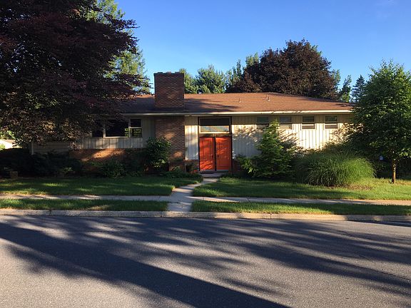 Attention mid-century enthusiasts! This Maple Avenue 1960's dream home in the "Village of Hershey" is outta sight! The sellers have carefully preserved and decorated this fine home worthy of publication in Atomic Ranch magazine! And now it's ready for new owners to continue the tradition or make it their own. This magnificent home boasts 4 bedrooms, 2 full and 1 half baths, and a huge family room on the lower level. There's more than 2400 square feet of living space! The home was constructed so that the lower level is part of the total living area, designed with open, dual staircases for a unique and comfortable floor plan. Enter through the front double wood doors to a nice size foyer with coat closet. Up or down the stairs from the foyer, the tour begins. The living and dining room feature cork flooring and tremendous windows for an open, joyful environment. The living room has a nice wood burning fire place. Off the living room is the dining area with a sliding glass door to an incredible wrap around balcony/porch. The balcony runs along the entire side of the house and around to the back. It's unique and perfect for entertaining and recreation. The kitchen is a mix of modern and mid-century appeal. The countertop burners fold up to add more counter space when not in use. The built in wall oven has been making family dinners for more than 50 years and is still a focal point of this kitchen. Newer refrigerator and dishwasher were carefully selected to match the original theme of the kitchen. The well maintained wood cabinets have pull out drawers and plenty of space while the pantry is a big surprise with spice racks and pull out shelves. The stairwell from the kitchen to the lower level is open, creating a loft-like view of the family room. The lower level has the awesome 30x16 feet family room with built in seating and access to both the garage and the back patio. Another bedroom is down the hall with a den/office and a half bath. On the main level, the master bedroom has 2 large closets and wood floors. The wood flooring continues to the 2 adjoining spare bedrooms with large closets. Both full baths on the main level are absolutely captivating with original countertops and decor. There is a whole house fan to efficiently draw out hot air. Outside there is an open area under the balcony for out-of-sight storage, a shuffleboard court on the back patio, and a nice driveway leading to the 2 car garage with its classic mid-century garage door. There is plenty of space in the garage for 2 cars and a workshop. Overall there are many surprise storage spaces inside and outside, with the home's vitals conveniently located in their own part of the large garage. There's room for everything and everyone! This is a magnificent home with aluminum and brick exterior, a hip roof, on a corner lot in a nice neighborhood. You'll appreciate every thoughtful detail inside and out.