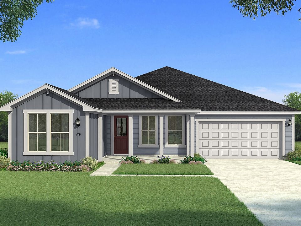The Delphi greets you with a thoughtful design that seamlessly transitions from the foyer into the Great Room. Near the entry, you'll find two bedrooms and a versatile flex room, with a powder room conveniently across the way. The flex room can be easily converted into an office with optional double doors. The Great Room featuring an electric fire place flows into an open kitchen and dining area, creating an inviting space for gatherings. The heart of this home is the spacious kitchen featuring a walk-in pantry, stylish island with breakfast bar, and ample storage. The owner’s suite, tucked away at the rear, offers a private and tranquil retreat, ensuring comfort and separation from the front bedrooms. The Delphi also boasts a covered patio, perfect for outdoor relaxation. Experience the perfect blend of style and functionality with The Delphi, where every detail is designed to enhance your living experience. This home features ENERGY STAR® certified Whirlpool® appliances, Energy-efficient tankless water heater, and Ecobee smart thermostat. Estimated completion January 2026.