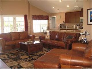 Beautiful home in move in condition available in desirable Rio Villa. PROFESSIONALLY JUST PAINTED EXTERIOR in NEUTRAL TONES and NEW 2010 ROOF! New Exterior a/c. Corner lot home on cul de sac with open floor plan, plant shelves, french doors, large master suite, pull out kitchen cabinetry, high-end kitchen appliances, oversized guest bath, new tile/carpets, resurfaced screened pool w/ fountain, new pool equipment,upgraded faucets and fixtures, "Smart Key" locks, storm shutters, transferable bond.