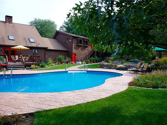 "Unique" Defines this Home!!! Quality built open design Colonial with superb wood working details - cathedral ceilings, sliders and numerous windows allow for an abundance of natural light. Oversized 2+ car heated garage - full house generator - high performance heating system - high end mechanicals. Exquisite landscaping - private 7.8 acre lot. Magnificent heated Salt water pool, multi level cascading Koi Pond surrounded by beautiful gardens. Decorative exterior lighting thru out. Barn & paddock - dog run also grace this property. Numerous other amenities offered with this property. "Entertainers Delight" MUST SEE to appreciate. Call today for Private Showing.