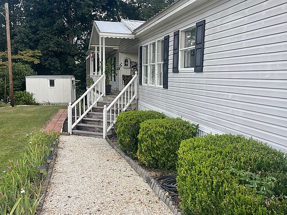 Waterfront living on Thomas Mill Creek at Lake Eufaula, Alabama! This immaculate Palm Harbor double-wide mobile home is the perfect lakeside retreat with fantastic outdoor amenities. Relax on the covered porch or spacious screened porch that overlooks the lake—a perfect spot for morning coffee or evening dinners. Fish for bass, crappie, bream, and more from your 3-4 year old 12'x20' stationary dock. Inside, the large family room features a cozy wood fireplace with an electric insert option. The dining area boasts large windows, and the kitchen offers an island and plenty of cabinet space. The primary bedroom features an en-suite bath with a tiled shower, double sinks and walk-in closet. This split-bedroom plan includes two additional bedrooms with ample closet space and a second full bath with a tiled tub/shower. The property includes two storage buildings, an attached carport, and beautiful landscaping. Mobile home anchored in cement to withstand up to 120 mph wind. This lakefront home is a must-see and offers the ideal setup for lakeside living!
