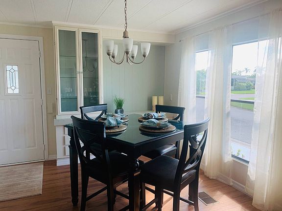 This darling home has been completely remodeled. It has a spectacular view of a lake and wildlife for you to enjoy while sipping on a cool beverage or reading a book. The exterior has fresh paint on the shutters, doors and driveway. Two bedrooms and two fully remodeled baths. A newly remodeled, chef's dream kitchen with beautiful white subway tile, tiled floors, a breakfast bar and new appliances Spacious open floorplan in the main living area. Character has been added to the walls with shiplap stained a light sea blue color. The living room adjacent lanai, with an amazing view also of the lake, is a very quaint space for a den or a reading room. This home will not last long...what an amazing deal for your own piece of paradise. Lot rent $1057.66 per month. * New plumbing throughout * New hot water heater * New thermostat * New bathrooms with tiled showers * New flooring & subfloors * New screen for the back lanai * New slab of concrete for the patio * New vapor barrier * New HVAC Duct work * Added cold air returns * New air supply for the side lanai * New electrical outlets with GFI receptacle * Shelving in the closets Colony cove named one of the Best Retirement Communities by the Herald Tribune! Colony Cove is a resort-style community designed around an active 55+ lifestyle, with waterfront views to spare and a variety of amenities and activities to enjoy. For a comfortable, affordable lifestyle with year-round sunshine, Colony Cove is sure to be your ideal community. Ellenton is a small, quaint town in Manatee County that benefits from warm tropical breezes and an easy-going, friendly atmosphere. With plentiful opportunities for leisure and recreation, you'll certainly take pleasure in Ellenton's comfort and conveniences. All listing information is deemed reliable but not guaranteed and should be independently verified through personal inspection by appropriate professionals. Integrity Mobile Home Sales cannot guarantee or warrant the accuracy of this information, measurements or condition of any property. Measurements are approximate. Lot rent subject to change.Integrity Mobile Home Sales cannot guarantee or warrant the accuracy of this information, measurements or condition of any property. Measurements are approximate. Lot rent subject to change.