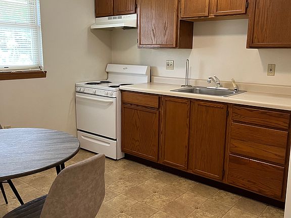 New appliances and lighting in updated apartment. Must have good credit with score of at least 600. Off street parking. Easy access to highways. Recently updated apartment. Plus Electric only. Heat, water and garbage pick up included. Coin operated laundry attached to building.