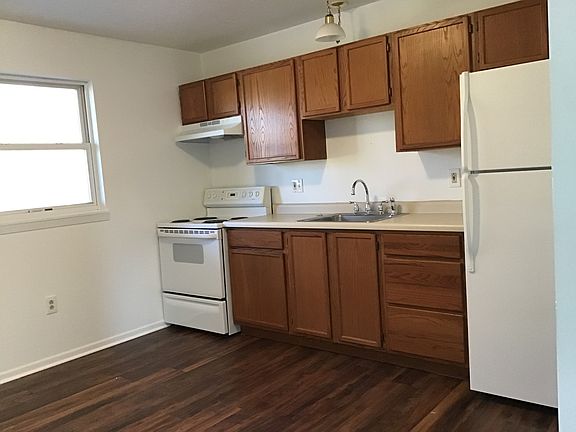 Second floor unit of 6 unit building. Off street parking and coin operated laundry room. Rent includes all utilities except electric. We pay garbage pickup. Must have a credit score of 600+ Lease is one year and month to month after that.