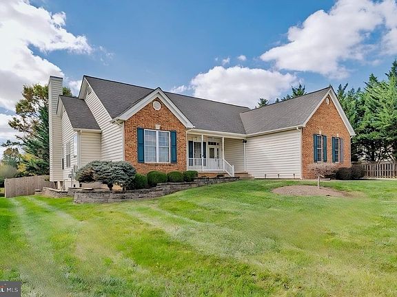 Exceptional 1-level living in the highly sought-after Battlefield Estates with mature trees for privacy! This beautifully maintained, move-in-ready rambler is expandable with the HUGE partially finished basement with wide welled exit, ready for your finishing touches! Perfectly situated within walking distance to schools, parks, fairgrounds, the public pool, restaurants, shops, and the charm of historic Downtown Berryville. This home offers both tranquility and convenience. The landscaped lot features mature trees for added privacy and lush raised garden beds—ideal for outdoor enthusiasts. Entertain effortlessly on the inviting 14'x14' screened-in porch or inside the elegant open floor plan that showcases hardwood floors throughout the main living areas, architectural archways, and stunning cathedral ceilings. The formal dining room boasts wainscoting and crown molding, while the spacious living and family rooms each feature a cozy gas fireplace. The light-filled kitchen includes stainless steel appliances, a breakfast bar, and an adjoining breakfast room with bump-out windows. All bedrooms are generously sized, including a luxurious 24'x14' primary suite with a massive walk-in closet and spa-like bath featuring a jetted tub, oversized shower, and dual vanities. Additional highlights include a new roof with solar panels which save you thousands of dollars in electric bills! A 2-car side-load garage Tesla charging station included. Whether you're relaxing at home or entertaining guests, this property offers space, comfort, and style in one of Berryville’s most desirable neighborhoods. Don’t miss your chance to call this gem your home!