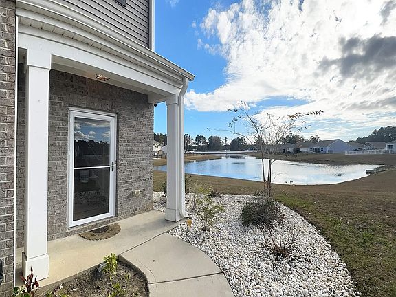 The perfectly located home awaits. This is a 5 bedroom, 3 bath, 2-story home which sits on a corner lot with wonderful water views from the pond on the side of the home and across the street. The side portion of the privacy fence can be switched out with a picket fence to give you a water view. Offering Luxury plank flooring throughout the main floor, including wet areas for easy maintenance. Enjoy a generous size walk-in pantry, upgraded granite countertops, stainless appliances including a new refrigerator and an island with breakfast bar and pendant lighting in the kitchen. Enjoy many upgrades such as: Outdoor landscaping, dual water heaters, Privacy fence with gates on each side, front storm door, garage door opener, washer and dryer, a rear screened & covered porch with extended patio overlooking a massive backyard. This is the ONLY home in the neighborhood which offers 9 foot ceilings in the 1st AND 2nd floor. The owner also installed a full gutter system which was not a standard builder offering at the time. The master suite features a walk-in shower, double vanity and sinks, and large walk-in closet. The remaining bedrooms were hand painted and one includes a writeable chalkboard wall. Only 20 min to the beach. Anchors Bends offers a pool & amenity center with workout room, ping pong, library & clubhouse all included in the cost of the HOA. This would make a fabulous secondary or primary home Seller is offering an Agent bonus and a generous seller credit at closing. Buyers responsible for final measurements and verifications.