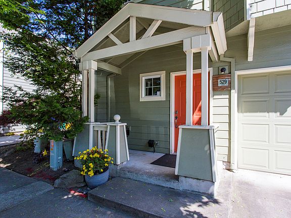 An urban townhouse with a private garden ready for summer barbecues. Kitchen with bar seating opens onto the living and dining areas with views of the back patio. Upstairs master bedroom suite features vaulted ceilings and walk-in closet. Second bedroom with en suite bath. Leave your car in the attached garage and enjoy easy access to TriMet and multiple bike boulevards. Walking distance to Irving Park, coffee, restaurants and shops!