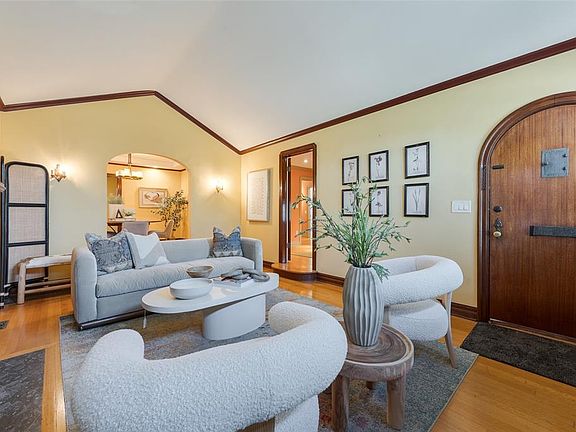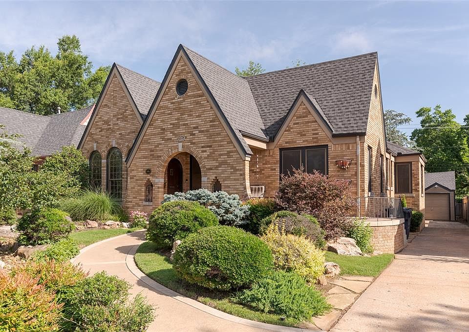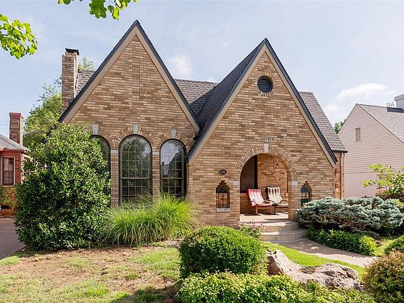Discover the charm and elegance of this historical Old English/Tudor bungalow, located in the highly sought-after Historic Crown Heights neighborhood. This architectural gem combines classic design with modern comforts, offering a unique living experience just steps away from the vibrant Western Avenue District shops and restaurants. Upon entering, you'll be captivated by the living area's stunning arched windows, which flood the room with natural light. The exquisitely detailed mantel with a gas log fireplace creates a cozy and inviting atmosphere, perfect for relaxing evenings. Beautiful original hardwood flooring throughout the home adds to its timeless appeal. The butler's pantry features built-in cabinetry with Tudor-styled leaded glass panes, making it an ideal space for a coffee bar or cocktail station. The classic black and white tiled bathroom adds a touch of vintage charm, while the spacious bedrooms provide comfortable retreats. A built-in desk/study nook off the hallway offers a quiet space for work or study. Step outside to the large deck off the kitchen, complete with a pergola, where you can enjoy views of the mature, landscaped backyard. This outdoor space is perfect for entertaining or simply relaxing in a serene setting. Additionally, the property includes guest quarters with a bedroom and full bathroom, providing a private space for visitors (187' not in footage). Surrounded by beautiful landscaping and in close proximity to Crown Heights parks and Douglas Park, this home offers the perfect blend of historical charm and modern convenience. Don't miss the opportunity to own a piece of Crown Heights history. Schedule your showing today! Security system is reserved.