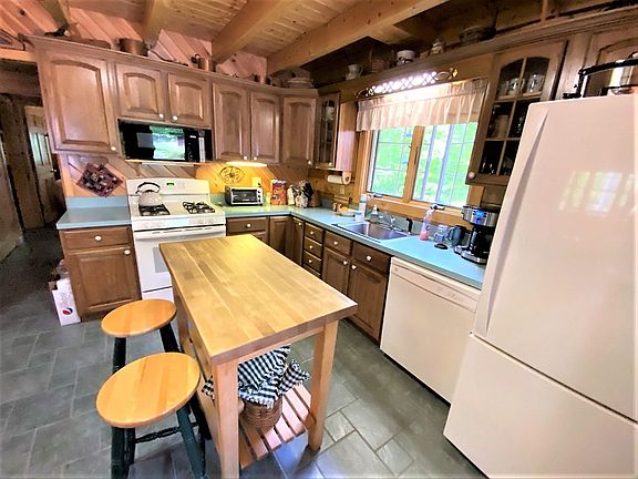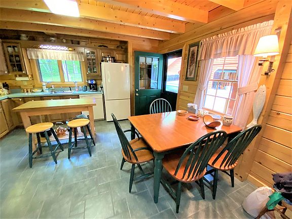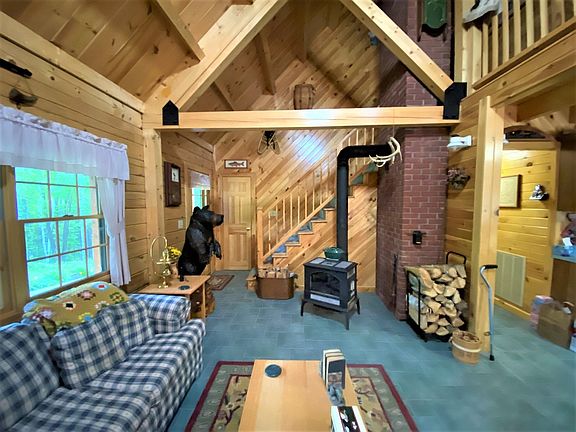 Now's your chance to finally own an immaculate log cabin in Vermont. Meticulously built and maintained, the owners are heartbroken to let this house go. Nestled on 5+ acres the home has a full covered front porch for enjoying evenings outdoors. Open concept living room/kitchen with vaulted ceilings are accented by a brick floor to ceiling chimney and a soapstone woodstove. There is a matching separate 2 car garage for cars with loft area for toys. Large deciduous trees shade the property perfect for a hammock. Nudist Camp road is a quiet dead end road with little traffic. Williams River State Forest abuts this property offering wonderful opportunities for snowshoeing, hiking and wildlife viewing. Sellers are installing a brand new efficient hot air furnace and water heater. Taxes are based on current town assessment.