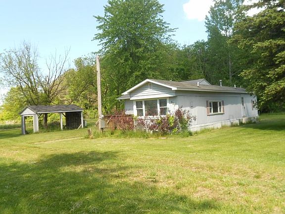 Large village lot with mature trees. This fixer upper is located at the end of a quiet street. 12 x 56 mobile home with a 12 x 20 addition. 24 x 24 detached garage on 2 1/2 acres. With some TLC this could be your next rental or home.