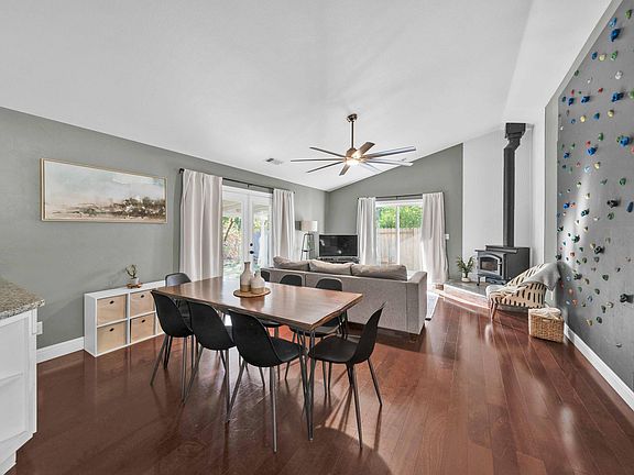 Move in ready Creekside home on a quiet cul-de-sac with a private setting. This home backs up to Churn Creek and Lema Ranch - McConnell Foundation, offering walking/biking trails. Walking distance to Boulder Creek School. Close to both colleges. Don't miss out on this 4 bedroom 2 bathroom home featuring owned a 22 panel SOLAR system, free and clear. Electric bill is so low! Only approx $100 a month! Updated Kitchen opens to a great sized living space with vaulted ceilings, wood stove and a fun climbing wall. There is a large master suite with vaulted ceilings, a walk-in closet, and an attached bath. Large front yard and privacy from the street. This is an Active AirBnB. You can purchase it as an income producing investment or enjoy it as your primary residence. Either way, you're going to fall in love with this home! Enjoy nature life here! You can regularly see beavers, deer or turtles. Towering oak trees with lots of birds and squirrels. Garden has 2 Fuyu Persimmons, a pomegranate, some citrus, a fruit salad tree (but it hasn't born fruit yet), Thompson seedless delicious green grapes, and wild plum trees down in the creek bed. The back has sprinklers for a great vegetable garden. Even the water is tasty here! Provided by Bella Vista Water District. There's a free little library down the street, fantastic neighbors all around and walking distance to From the Hearth Cafe and University Market. *Structure is NOT in a flood zone. *HVAC was installed April 2016. *Roof was installed Sep 2013 *Electric bill approx $100 a month, that includes the garbage and sewer charges.