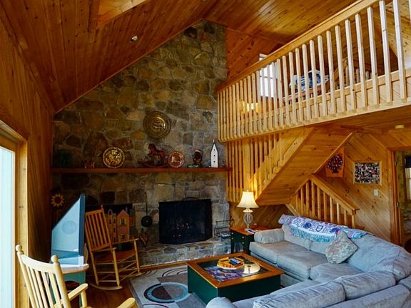 Take a look at this beautiful Beech Mountain home with long-range views! With a total of 4 bedrooms and 3 bathrooms there is ample space for family and friends. Enter into the kitchen, dining and living area with a floor-to-ceiling stone fireplace and large windows to draw in the mountain view. This main level also features one bedroom with its own bath. Up above is the loft with a pool table, bunk beds and play area. Downstairs on the lower level is the master bedroom and bathroom which features recent renovations such as the stack stone gas fireplace and custom bathroom work. Two other bedrooms and full bath are featured on this level as well. All hardwood floors throughout the home. This home is being sold furnished with exceptions of some personal belongings. Seller plans to remove wallpaper and re-paint several of the bedrooms this spring.