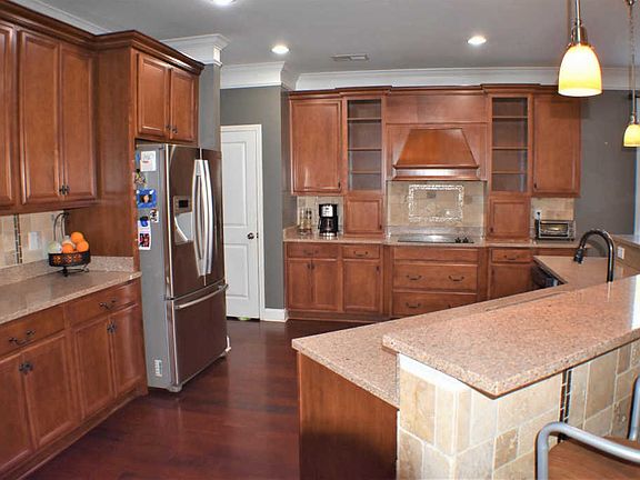 - RoomKitchenFeatures: Granite Counters, Kitchen Island, Pantry, Recessed Lighting, Eat-in Kitchen, Floors-Hardwood, Cabinets-Stained, Backsplash-Tiled