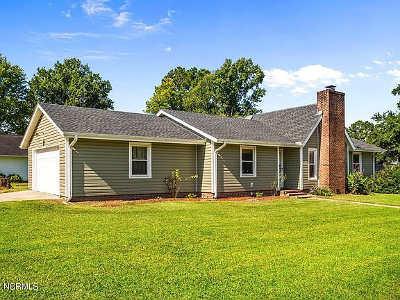 Come see this 3-bedroom, 2-bathroom, 2-car garage home sitting on a large corner lot. The home is located outside of city limits so NO CITY TAXES but it is also on a sewer system so no septic with this one. This home also has a newer roof...replaced in March 2020. The home features a large living area with wood-burning fireplace, a dining area, and kitchen with ample counterspace. The primary owner's suite is on the left side of the home while the two guest bedrooms are on the left, providing for additional privacy. The spacious backyard is fully fenced and has an inviting patio ready for those backyard gatherings. Located close to military bases, shopping, and restaurants yet far enough out to enjoy peaceful county living. Come see this one today before it's going, going, gone!