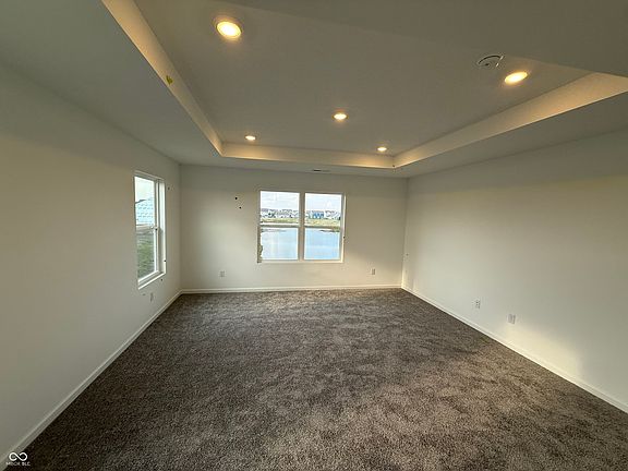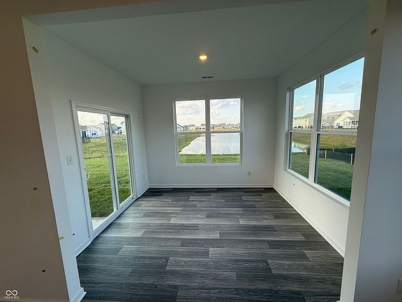 Welcome to your new home in charming Sheridan, Indiana! This beautifully designed Empress home offers 6 spacious bedrooms and 4 full bathrooms with over 3,300 sq. ft. of thoughtfully crafted living space. Set on a corner homesite with a beautiful pond view, the exterior showcases eye-catching vinyl board & batten vertical siding, offering a modern twist on the classic Craftsman style. Step inside and enjoy the open-concept layout featuring 9' ceilings on the first floor and 6' tall windows that flood the space with natural light. Designed with functionality and comfort in mind, the first floor includes a private bedroom and full bathroom, perfect for guests or multi-generational living. The sunroom extension adds a bright and cozy space ideal for relaxing or entertaining year-round. The heart of the home - the kitchen - boasts 42" tall upper cabinetry in a warm burlap finish, soft-close doors and drawers, white carrara laminate countertops, and sleek black appliances for a clean, timeless look. Retreat upstairs to the expansive primary suite, where a single-step ceiling adds elegance. The ensuite bathroom features a 48" shower, a luxurious garden tub, and coordinated finishes that create a spa-like ambiance. Upstairs, you'll find 4 additional bedrooms, 2 full bathrooms, and a versatile loft space.