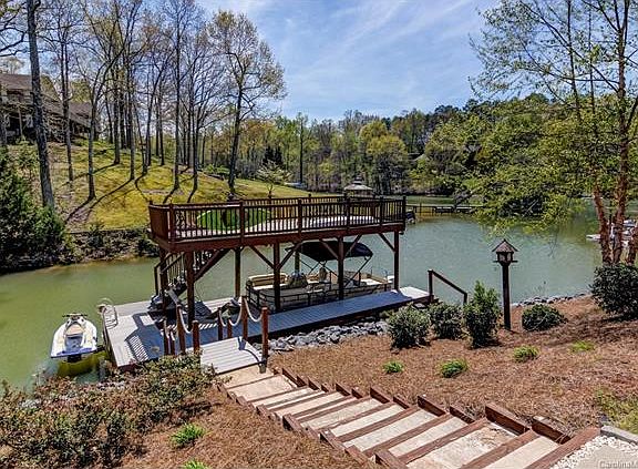 Custom-built waterfront home in sought-after Fort Mill area. Located on quiet cove just off Nivens Creek. Covered dock w/ rooftop deck and lift for boat/jet ski. Gourmet kitchen w/ granite & SS appliances. Great room w/ raised ceilings & wood floors. Spacious master on main w/ luxurious master bath. 2 beds upstairs w/ loft. Lower level w/ 1BR, 1 full bath & large flex room w/ wet bar. Enjoy the outdoors w/ main level screened porch, lower level deck w/ hot tub & beautifully landscaped yard.