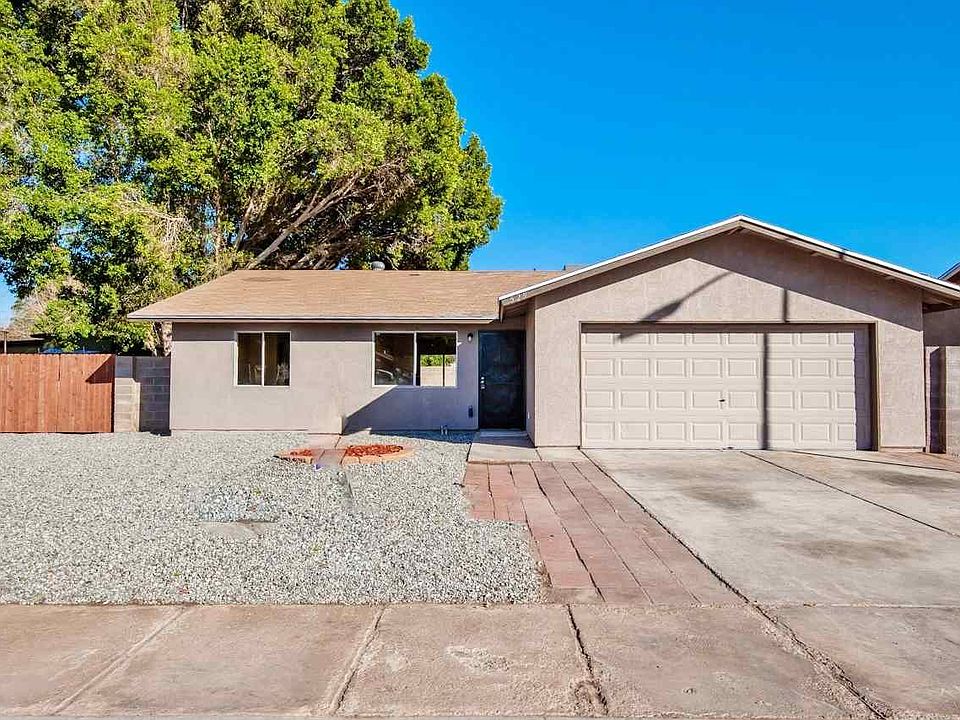 Fully remodeled Sun Valley Estates four bedroom house for sale with ceramic tile and granite counters throughout kitchen and bathrooms. New stainless steel kitchen stove, dishwasher and microwave complement the crisp white cabinetry. Brand new bathrooms with tile surrounds that reach the ceiling. Indoor laundry room. Front yard is fully hardscaped for easy maintenance and backyard has a mature tree that gives the home plenty of shade.