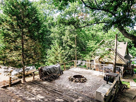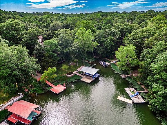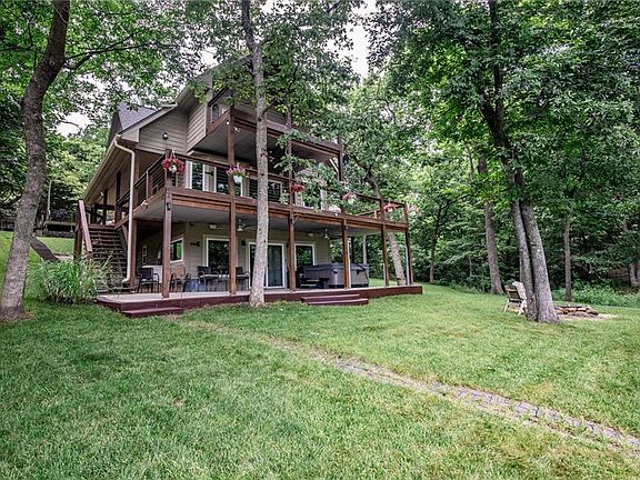 Waterfront custom-built home with the finest materials, finishes and craftsmanship. This home was designed for entertaining yet practical for everyday living. Main level living essentials include custom cabinets. Kohler fixtures, tankless water heater, hardwood floors, heated floor in the main bath, trash compactor, Kitchenaide appliances, Jacuzzi tub, Quadra fire pellet stove, 200 amp serv., Granite countertops, Travertine tile and more. The exterior is lake life perfection featuring 2 decks with wrap around, patio, ceiling fans on the decks, exterior generator hookup, deck lights, RV hook up, 50 yr shingles, SS cable deck railing, 12x16 PRIVATE Dock with boat lift, with the option to buy Bennington pontoon boat. The basement walks out to the inviting patio and hot tub. The property includes 4 lots total with a detached 2 car heated garage and a detached 3 car garage across the street. The house sits on 2 lake front lots. This one-of-a-kind home has a master bedroom that overlooks the lower level and has a private deck overlooking the lake for morning coffee. This home also is located in a small cove off the main lake and provides privacy yet a fantastic view of the lake activities. The upper area of the yard is RV friendly with power and a fire pit area. Across the street garage is currently used for the home gym. Lot size is for the house on 2 lots.
