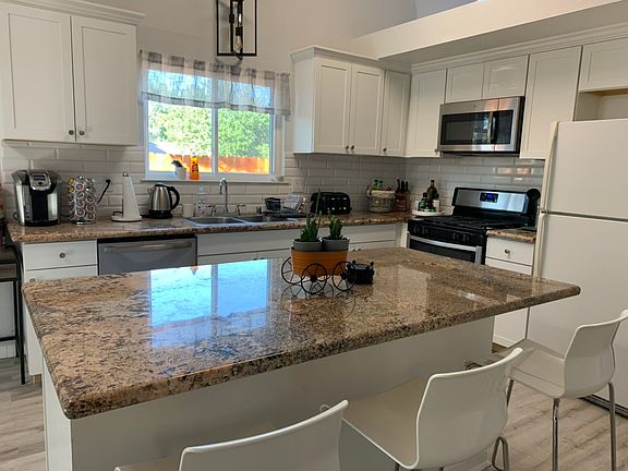 A modern, fully-furnished, recently-renovated 4 bed 2 bath 1680 sq. ft. single family house with a quaint backyard. Features new granite counter tops, new cabinets, and new luxury vinyl flooring throughout. The master bedroom has a two-sink vanity with private bathroom, while three additional bedrooms share a bathroom with shower tub. Fenced and gated backyard composed of rock and adorned with shrubbery and trees. Perfect for a large family or a group of students! It is located in a quiet neighborhood near Peppertree Ln. and Hilltop Dr., within walking distance to the Civic Center. 3 miles from the main Bethel campus and just 1 mile from popular shopping destinations such as Trader Joe's and the Mt. Shasta Mall. Available from /1/26. 1-year lease. Security deposit of $2550 required. Utilities paid by tenant (gas, water, electric, sewer, trash). Pest control provided by owner. Appliances include microwave, stove, oven, dishwasher, and refrigerator. No smoking, no pets.
