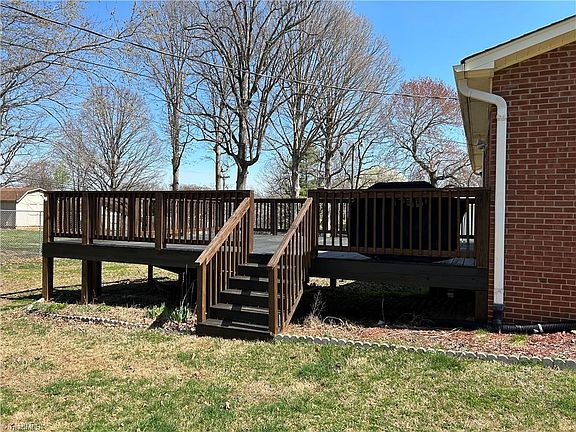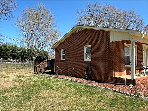Cute brick ranch in great location, 3BR/3BA, nice size living room, large eat-in kitchen with refrig and stove staying, primary on main has private bath, 2 more nice size bedrooms and full hall bath, basement has large den, office/storage area, full bath. laundry room and unfinished garage/workshop area, covered front porch, deck, fenced backyard area with storage building, raised garden areas with strawberries, paved drive