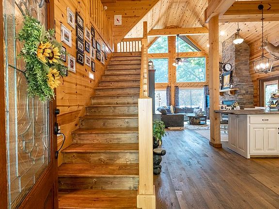 Stunning Hand Scraped Log-Sided Chalet is YOUR PERFECT, PRIVATE MOUNTAIN RETREAT. You'll be awe-struck the moment you enter your Great Room! The open floor plan hosts a stacked stone fireplace, wood vaulted ceiling, and hardwood floors for rustic elegance. French Doors access your porch while large windows bring light and nature inside. Your kitchen has custom cabinetry & SS next to your dining area. The main level Master Ensuite has private access to the porch. Upstairs is the guest bedroom with a private porch, an office/bonus room, and a full bath. Downstairs is your INCREDIBLE Rec Room complete with a pool table, 2nd Master Ensuite with porcelain "distressed" tile, custom vanity & copper basin. Detached DBL car garage. SO MUCH ATTENTION TO DETAIL MAKES IT A MUST-SEE TO BELIEVE!
