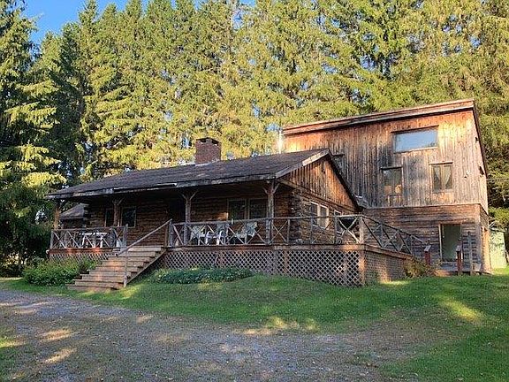 BOHEMIAN DREAMS are what this SPACIOUS CABIN offer the new buyer! Peacefully situated on 1.3 acres, framed by pretty stone walls and adjacent to DEP, forever wild land! Open, eat in kitchen with a BRICK FIREPLACE and toasty warm wood stove features VERMONT SLATE floor. The living area boasts LOVELY OAK FLOORS and yet another woodstove. Off the living area is a light filled den and funky office space with french doors leading out to beautifully manicured lawn and prennial beds. Two bedrooms and a full bath complete the first floor, with the MASTER BEDROOM AND BATH located upstairs with its own PRIVATE DECK. The full basement is comprised of the laundry area and one car garage. with electric powered overhead door. Propane fired hot water baseboard heat. DEP approved septic. Lightly traveled, town maintained road. Close to GOLF COURSE, popular towns of Andes and Delhi.