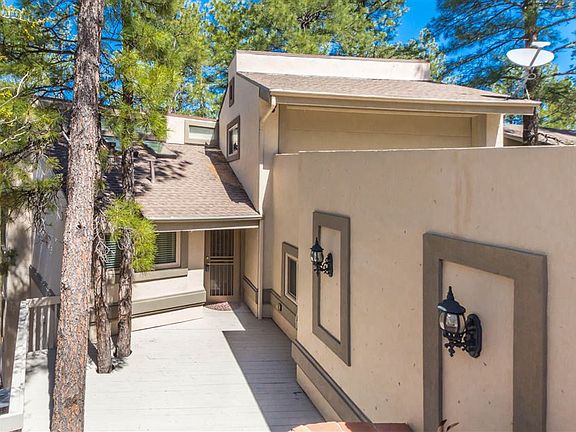 This charming home is the perfect full time or summer residence. In the pines, just 5 minutes from Prescott's iconic Downtown, with Hiking and Biking trails practically at your doorstep. From the moment you walk in the front door, you will feel the serenity of this home. The Living Room with its coffered ceiling and cozy fireplace, the Kitchen is detailed with Stainless appliances. Great storage and an island for additional seating and work space. Just off the foyer will take you to a beautiful Master Suite with ensuite bath and huge walk-in closet. There are five outdoor decks for enjoying the flora and fauna. The view is also extended because the HOA owns additional open space. Lastly there are 3 more bedrooms and 2 baths. RV storage is available on a first come basis. UNIT #1.