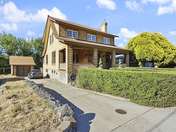 ASSUMABLE VA LOAN, check with agent for details. Charming historic home with separate living quarters and modern upgrades! The lower level features its own private bedroom, kitchen, laundry room, and living area—perfect for multigenerational living or guest space. Just steps from downtown The Dalles, this 4-bed, 2.5-bath brick beauty sits along Mill Creek and offers 3 levels, 2 kitchens, 3 decks, and 3 shop spaces. Enjoy a massive main-level living room, formal dining, and updated kitchen with tall cabinets, cooktop, double ovens, and drink bar. Upstairs features 3 bedrooms, including a primary suite with walk-in closet/office area. Outside, relax on the two creekside decks or unwind by the fountain on the covered front porch. The converted garage/shop is powered, plumbed for air, and climate-controlled. With multiple storage areas, tankless hot water, and two heat pumps, this one blends historic charm with modern convenience. Don’t miss the 3-D tour and schedule your showing today!