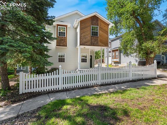 Newer westside home in up and coming neighborhood. Centrally located on a quiet street with mature trees. Enjoy wonderful curb appeal on huge, flat, fenced lot with gated alley access. This wonderful home has just been freshly painted with new carpet installed in June 2023. .Walk from covered composite deck entrance into the main level with 9 ft ceilings and hardwood floors throughout. The open floor plan flows from living/great room to newer kitchen with 5 burner gas range, large dining area and half bath. The 2 car garage flows to wonderful fenced back yard with a l17x15 stamped concrete patio which is perfect for summer barbeques, pets and game/play areas. The upper level boasts a massive master bedroom with sitting or study area and a remodeled high end master bath with double granite vanity and rain shower. Upstairs there is another full bath with new marble vanity and mirror. Enjoy two more generous sized bedrooms on the upper level and new carpet throughout. There is a laundry with washer and dryer that is conveniently located near all the bedrooms. The unfinished basement is great for storage or a future theater or game room. Minutes to ! 25, downtown and Colorado College with nearby restaurants and shopping. Walk to Elementary school and park. You will love the closeness to all the city conveniences and the a hard to find large backyard with a stamped concrete patio. Move in ready. A must see!