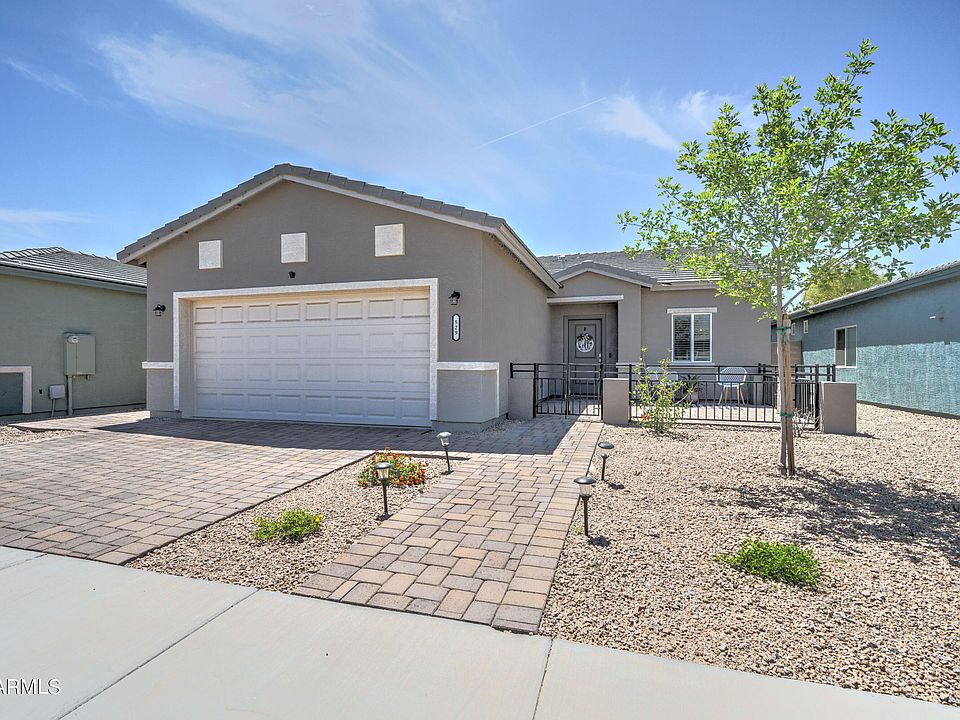 WOW!! Almost New! Upgraded single story home in South Mountain Gated Community! This home features beautiful gray quartz countertops, Custom 36'' White Shaker cabinets dressed in brushed nickel pulls, white subway tile backsplash, stainless steel farmhouse sink, stainless steel appliances & , breakfast bar. 9ft soaring ceilings, Gorgeous all purpose 48'' vinyl plank flooring & plush carpet! Huge master suite, Beautiful upgraded ceramic tiled shower, clear glass shower door, dual sinks, barn door & big walk-in closet! Old world paverstone patios & driveways! Gated community with pool & front yard landscaping is included! Gorgeous paverstone front courtyard for those coffee mornings & paverstone backyard patio with lush green no maintenance turf! Great walking paths inside gates! Hurry!
