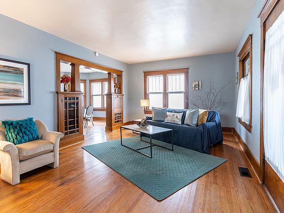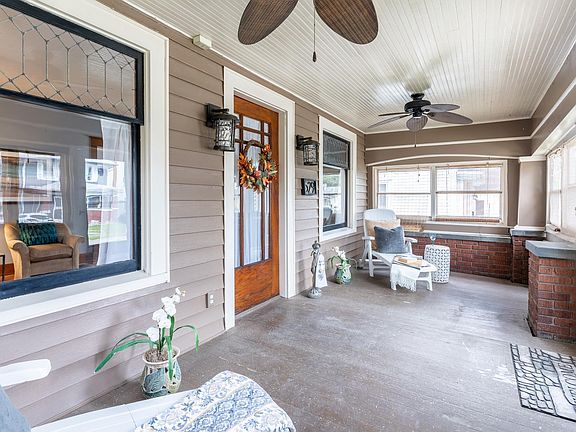 Closed sale entered in the MLS for comparable purposes. Historic American Foursquare home filled with architectural character such as built-in cabinets, hardwood floors, arches, stained glass windows, hidden writing desk. Welcome guests to visit in the inviting enclosed front porch or the screened back porch. All kitchen appliances remain. Flex room beside the kitchen is perfect for a huge pantry or a conversion to main floor laundry. Each bedroom offers a walk-in closet. Large den with built-in bookshelves could be another bedroom. Full bath offers a remodeled tub/shower. Large detached 2-car garage has plenty of storage. Roof about 13 years old, furnace and air 2010, hot water heater 2013. Encroachment exists as neighbor had permission to build a fence over the property line, see attached survey. Estate sale.
