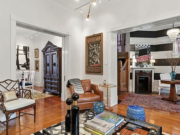 This fabulous Old Louisville circa 1900 Victorian home offers 2950 Sq. Ft. of renovated and restored living space with a dreamy primary ensuite encompassing the entire 3rd floor. Super great location on West St. Catherine between Garvin Place & 6th St. which consists of mainly single-family homes. The covered front porch opens into the grand foyer with corner fireplace with original tile, oak flooring with inlays, dramatic black & white striped walls and a crystal chandelier. The foyer opens into the formal living room with oak flooring, crown molding, a starburst chandelier, track lighting & another working gas fireplace. Through pocket doors you enter the formal dining room (overlooking the rear gardens) which has wide yellow heart of pine flooring, another beautiful corner fireplace (not used), a period chandelier and track lighting. There is a hallway from the foyer back to the kitchen that has a closet along with a 1/2 bath with oak floors and a vanity with speckled dark granite. The large eat-in kitchen is stunning with floor to ceiling white subway tile, light grey cabinetry, recessed lighting, speckled grey granite counter, double sink, a red Smeg gas range, Whirlpool microwave, dishwasher & refrigerator. There is also a built-in pantry and laundry cabinet for a stacking washer & dryer. Up the incredible natural split staircase to the 2nd floor where you will find 3 bedrooms (1 being used as home office & one being used as family room) all with fireplace mantels & a bonus room currently used as a huge dressing room/closet. There is a full bath on this floor that offers a vintage claw foot tub w/shower surround, bead board under chair rail, black & white ceramic flooring and a pedestal sink. Your private 700 Sq. Ft. ensuite retreat awaits you on the 3rd floor with a large bedroom, a sitting area, full bath with walk-in shower. There is also a walk-in closet with original built-in drawers and cabinetry. The owner created this great space after purchasing the home and added a separate HVAC system to ensure comfort year-round. This home has neutral colors, gorgeous décor, beautiful lighting fixtures & fireplace mantels, natural millwork, incredible split staircase, tall ceilings, and custom blinds. Outside you will find a very enjoyable covered rear porch with graceful steps into the privacy fenced rear yard with patio and beautiful garden areas. There is also off-street parking behind the fenced yard with room to build a garage or carriage house and a cellar for added storage. The average LG&E runs around $175 per mo. and the Water/Sewer runs around $75 per mo. Super great neighbors up and down the block. Old Louisville offers Olmsted's Central Park with tennis courts, a children's playground and large splash pad along with the Information Center & outdoor amphitheater where you can enjoy "Shakespeare in the Park" and live concerts throughout the summer months. Also, you can enjoy the Saint James Court Art Show, the Holiday Home Tour & The Old Louisville Hidden Garden tour and so much more. Lots to do with great neighborhood camaraderie and located close to downtown, all major interstates and the International Airport. (The antique medicine cabinet in 3rd floor bath will not convey with property, holes will be patched and painted prior to closing). The seller is willing to pay up to $5000 towards buyers closing costs, prepaids, buy down, credits, etc. with an acceptable offer.