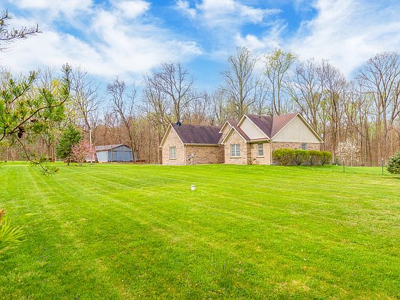 Postcard views and a luxurious en-suite primary bathroom! The enviable ease of single-story living is yours to enjoy in this delightful 3-bedroom, 2-bathroom ranch house, which is perfectly situated in Columbus with quick access to the heart of the city and the interstate while still maintaining maximum privacy. It offers a wealth of amenities which is a rare find from its large yard, located on a quiet, low-traffic street lined with trees, and the close proximity of the natural allurements of the Driftwood River. You'll enjoy impressive views of the forest and gorgeous grassy area. Cross the threshold into a warm welcome that includes oak hardwoods in the foyer, kitchen and living spaces, an open layout, stylish lighting, and a wood burning fireplace in the living room. The ample kitchen charms with natural light and an attractive L-shaped layout. The calm primary bedroom includes a walk-in closet. The other two bedrooms are ready for your decorative touch. Attached two-car garage. Exteriors include an inviting open air patio, large pole barn, fenced backyard, and a fire pit!
