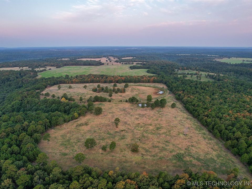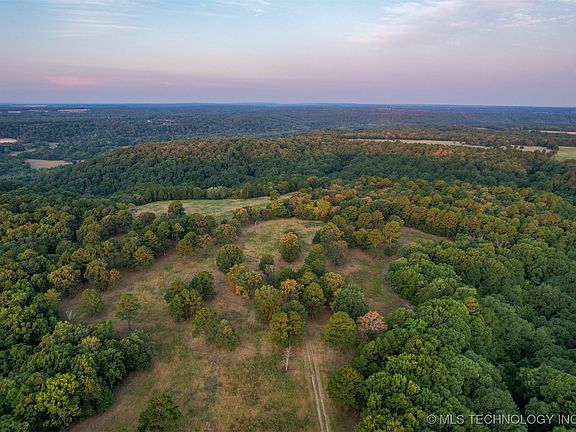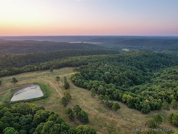 Introducing The Pine Valley Ranch, an extraordinary 400 +/- acre farm located in Cherokee County, Oklahoma! Heading south off of the gravel county road, you travel nearly one mile to the secluded ranch. As soon as you enter, you instantly recognize the beauty of the 400 +/- acres as it is filled with open pastures, towering pines and big timber. There are massive open areas to plant food plots as well as blinds and feeders in place, ready to hunt. On the north side within the timber, there is already a food plot location, blind, and feeder that is ready to be taken advantage of! In the center of the ranch is a steep ravine mixed with pines and other hardwood timber. At the bottom of this specific ravine are two springs. These springs meet in the center and converge into one that flows south. There are two other springs, totaling four springs on Pine Valley Ranch! This property provides you the opportunity to hunt whitetails, turkeys, hogs, and even black bears! The southeast portion of the ranch also has a steep ravine. Moving towards the southern portion of the ranch, there is a beautiful 2 bedroom/ 2 bathroom cabin with soaring vaulted ceiling! Next to the cabin is a shop/garage where you can store vehicles or equipment. In addition, there is a nice pond where you can enjoy some fishing. The cabin is setup with a wood burning stove perfect for the winter months. There is a nice main bedroom along with an upstairs room ready to sleep any family or friends! From the front deck, you will see the breathtaking views into one of the ravines. There is also a new water well! A barn currently stands adjacent to the cabin that acts as a great structure to store equipment. Currently, there is a nice Kubota tractor that is included in the sale. Set up in this barn is a built in blind adding to your number of hunting spots. On the northwest side, there is another barn that could be utilized for storage. The blinds and feeders are included in the sale.