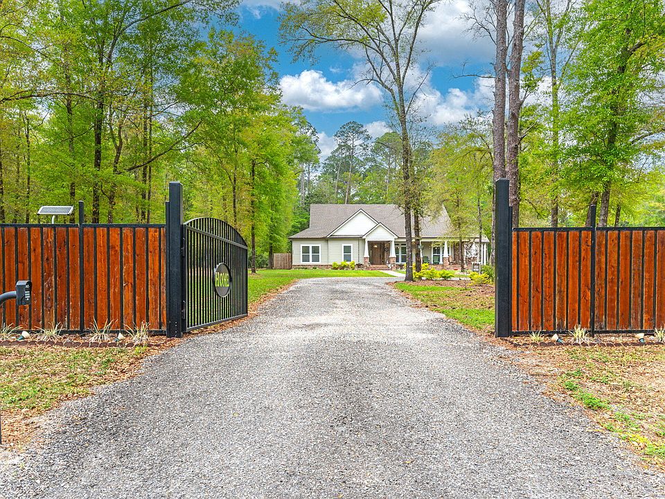 ***WELCOME HOME*** THREE serene ACRES, 2500 sq.ft. 3 bedroom 2 bath 2 car garage Homestead with POOL and ADDITIONAL 1900 sq.ft. Heated and cooled building- perfect for home business or convert to a Mother in Law Suite. The property boats a Private electronic ENTRY GATE and immaculate landscaping. Step inside the main house to an exquisite open-concept living area featuring a stained tongue-and-groove VAULTED ceiling, rich WOOD flooring, and a beautiful buckstove wood-burning FIREPLACE. The kitchen is a chef's delight with stainless steel appliances, a DOUBLE OVEN, granite countertops, a GAS cooktop, a LARGE ISLAND with a sink, and a huge walk-in pantry. The split bedroom floor plan ensures privacy for the primary suite, The en-suite bathroom includes a double vanity, custom cabinets, FREESTANDING TUB, a stand-up shower, and a WALK-IN closet with built-in SHELVING and a workspace. The laundry room, accessible from both the primary suite and guest section, adds convenience to your daily routine. Guests will enjoy two spacious carpeted bedrooms and a stunning bathroom. The oversized, heated, and cooled garage offers ample storage and workspace. Step outside to the screened-in patio, complete with a POOL, outdoor SHOWER, and OUTDOOR KITCHEN. A whole-house GENERATOR powers both the main house and the workshop, and a gas line runs to the outdoor kitchen area, ready to connect to a pool heater if desired. This stunning property combines luxury, functionality, and the peace of country living, making it the perfect place to call home.