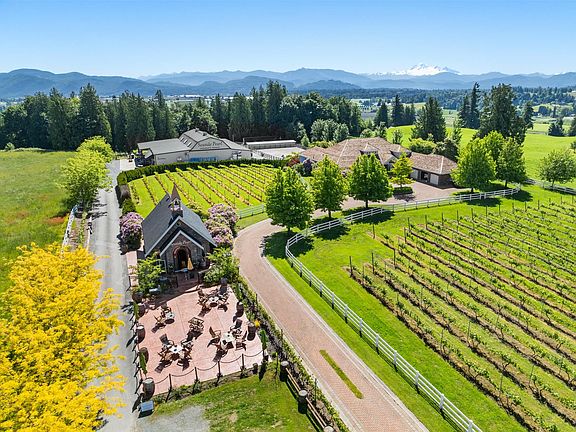 Seaside Pearl Farmgate Winery! This one-of-a-kind acreage where you can have it all! Multi Award Winning Winery, Elegant Farmhouse & Equestrian set up! Chapel style tasting room with various picnic areas. Impressive "Barrel Room" to host large tasting groups & events. 4+ acres of vineyard offering different varieties primarily Petit Milo. Separate driveway to 5,450 sq ft home,4 bdrm,3 car garage. Great quality, craftsmanship & lovely gardens. Main Barn offers 9 Stalls, 9 Paddocks w/shelters, Round Pen, All Weather Outdoor Arena. Flex space 100"x 50" can be converted back into a Hockey rink, small indoor arena or more winery space! Multi family set up 3bdrm suite above barn or room to house staff. Perched up on Olund Road, take in the breathtaking views of Mt.Baker. Preview the video tour!