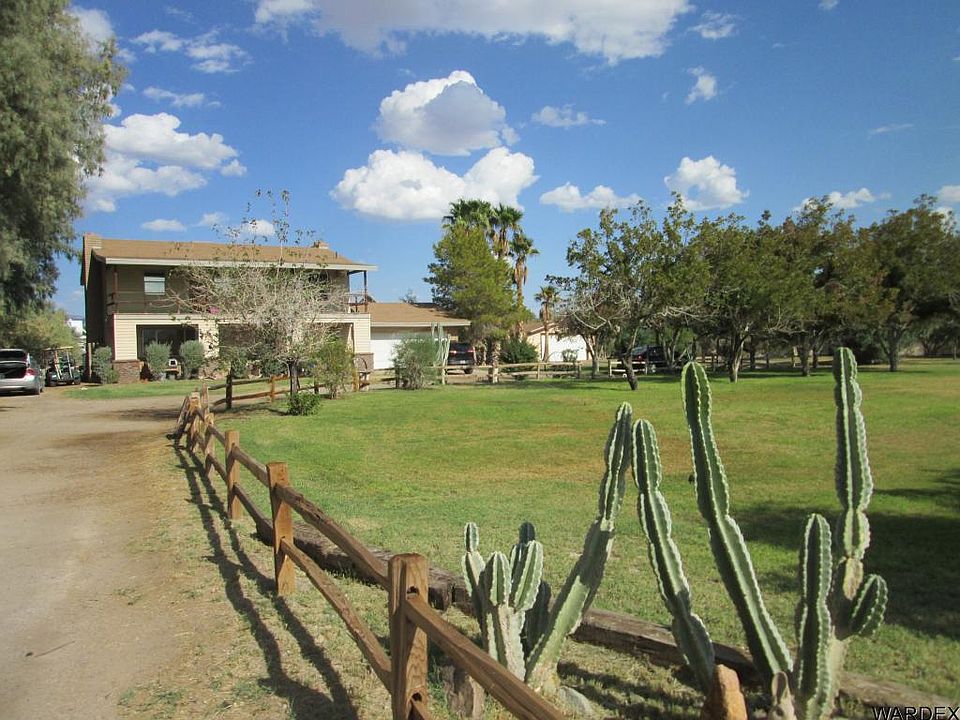 Beautiful setting on 2.01 acres. home features 3 bedroom with den (could be a 4th bedroom), 2 1/2 baths, 3 fireplaces, formal dining room, living room and a family room. Attached garage 24 x22 detached garage 24x35 with 8 ft. door. Balconies, a fenced dog area, multi purpose basement , gorgeous landscaping in front. On well, fully fenced and zoned for horses. Country living, close to the new Walmart, grocery stores, hospital the Colorado River and Laughlin NV.