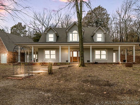 Large Country home not far from Oologah Lake. Almost 3300 sq ft on over an acre lot. 4 bedroom, 3.5 bathrooms all bedrooms are oversized with walk-in closets. Master bath with his & her closets. Large gameroom with wet bar and pool table stays. Large mud room, tanning room with 220 outlet, floored walk out attic. Oak trim & cabinets throughout. New roof in 2022, 3 zoned heat & air, central vac system and amazing wrap arund porch. 4 car garage with work/storage area. Hot tub hook up at end of home. What more could you ask for?