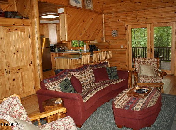 Amazingly well built dream log home on the big south branch of the Pere Marquette with 1400 ft of frontage. This beautiful home offers a rustic environment with luxury amenities. Overlook the river less than 100 ft away from the 3/4 wrap around porch or the natural wildlife of 15 private acres with an additional 67 acres available. River is well known for its fantastic supply of trout, salmon and steelhead or canoeing and kayaking. The warming living room is a perfect setting to gather by the fieldstone fireplace. Tall ceilings keep you from feeling closed in. A whirlpool hot tub and 4 different shower head options in the master bathroom are sure to please. This property truly is the perfect sanctuary for the outdoors lover without losing luxury.