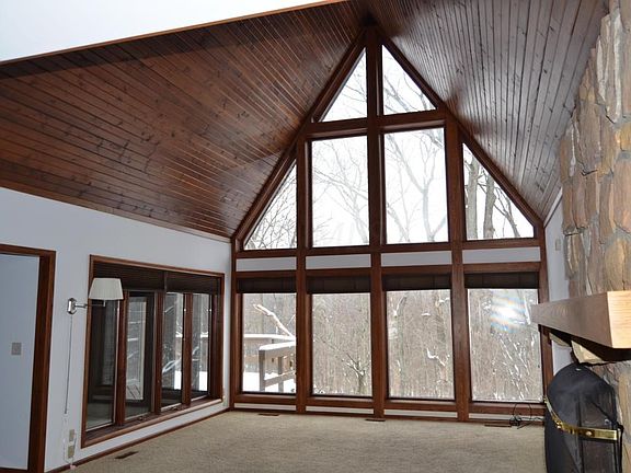 Custom built home nestled on 18 AC with a view of state park. Recent updates HVAC, roof, hot water heater. Grt Rm has cathedral wood ceiling, fplc, wet bar with views of woods. Finished lower level w/newer carpet, stone fplc, 2 storage rms, extra room possible den. Owner's ste w/whirlpool tub and fplc. First floor laundry w/partial bath. Deck, Florida Rm, Irrigation system. 2 + car gar, carport, central vac. Lower level is not included in the square footage.
