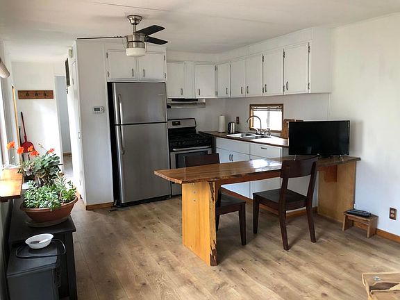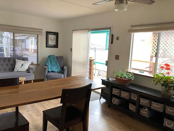 Space # 38 is a remodeled, one-bedroom, one bath, 480 sq ft mobile home in Coulter Pines Mobile Home Park, an over 55 resident-owned and operated mobile home community. The mobile home purchase includes a 1/46th ownership share in the park and a low $220 per month HOA fee that covers water, snow plowing, trash pick-up, and general park maintenance. This coach is conveniently located on the top portion of the park with great parking, access to the community garden and because it's where it is, you have peek a boo views of Marion Mountain, Tahquitz Peak and Lily Rock - Idyllwild's famous landmark. The unit has recently updated appliances, stainless steel sink, propane oven/range with hood, a live-edge wood counter, and an eating bar in the kitchen. Other updates include wood flooring throughout the unit, a new furnace, a tiled shower, a live-edged wood countertop, a new sink in the bathroom, window air conditioner in the bedroom, and a ceiling fan in the living room. Coulter Pines is well known for its beauty and its friendly community. There is a community garden and a clubhouse for frequent gatherings and BBQ's. The park is pet friendly. Make this affordable get a way yours today!