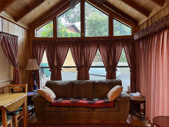 Welcome to your dream home in the picturesque Pine Cove community! This charming property is nestled within the serene, homeowner-owned 55+ community of Coulter Pines, where you'll enjoy the benefits of low HOA fees that cover weekly trash pickup, water usage, septic system maintenance, snow plowing, and even property taxes. Step into a lifestyle of ease and comfort with access to the community’s wonderful amenities, including a shared laundry facility, a welcoming clubhouse, a delightful community garden, and a scenic picnic area. The home itself is a true gem, featuring a spacious deck that stretches the full length of the house, perfect for relaxing and taking in the fresh mountain air. Its classic cedar siding and durable metal roof offer both charm and practicality. Inside, you’ll find a cozy, fully furnished space that is move-in ready, boasting a 200 sq ft loft ideal for a second bedroom or ample storage. The interior is enhanced with stunning cedar beams and soaring vaulted ceilings, creating a bright and airy atmosphere. The kitchen is a culinary delight, equipped with a full-size GE refrigerator, a stove, and a convection microwave. For added comfort, the home is fitted with central heating and a decorative fireplace/heater, ensuring you stay warm and cozy throughout the year. Don't miss this opportunity to own a beautiful, well-appointed home in one of Pine Cove’s most desirable communities. Schedule your visit today and start envisioning your new life in Coulter Pines!