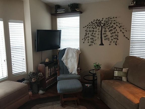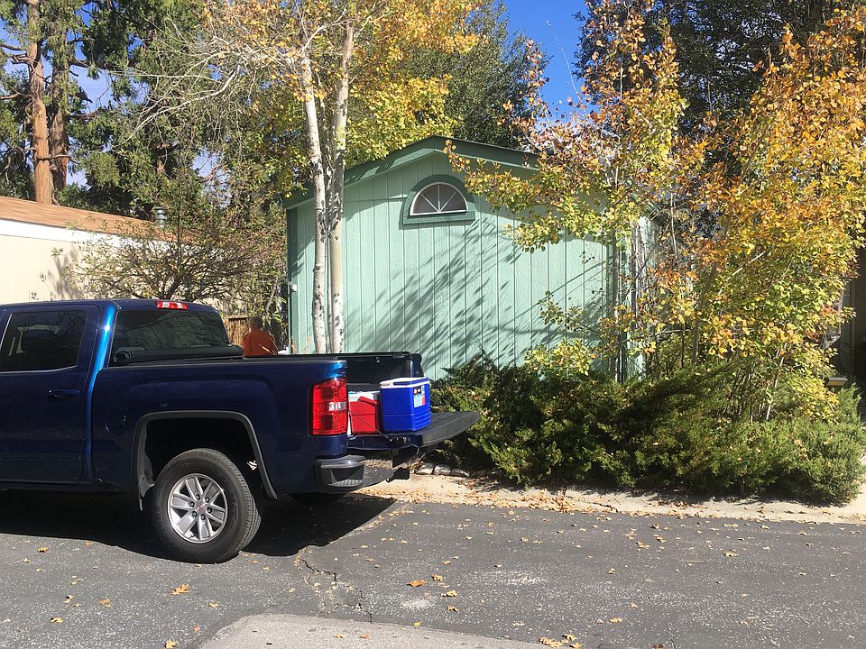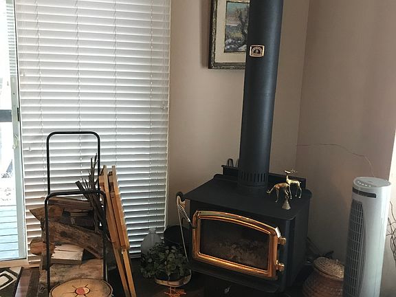 Made to last..Space 28..A deck wraps around from the doorway to the living room and spans the entire front of the home. High Mtns, sunset and sunrist..enjoyed both outside and from the window, inside. Spacious living room with a real wood burning stove,. a kitchen with room for many cooks nice appliances, lots of counter space and cabinets Down a wide hallway. the first bedroom w builtin closets is now used as an office. The next is the full bath with tub/snower.. Across the hall a full size stack set washer& dryer.and storage cabinet., The second and main bedroom is at the end of the hallway. it has spacious built in closet. slightly vaulted ceiling, room for queen or larger bed. dresser, storage cabinet. night stands and more.. An attached storage bldg includes an upright freezer, lots of shelving. There is plenty of off street parking on one side of the coach...Made in the east. it has 2 x 6 walls. allowing for more insulation. The price includes a Share in the park. Home is furnished, an over 55 park w/club house, decks, . Monthly fee presently is $185. includes water, trash pickup, snowplowing. and park maintenance. a convenience store is on the corner.
