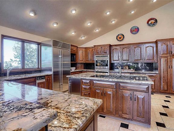 Stunning fully custom built home with separate guest house and barn sitting on just under 6 acres with amazing views of the front range and no one behind you to block your view! This property has a country feel but is just minutes away from I-25 with easy access to Denver and Castle Rock. Walk right in the main home and find yourself in the great room with over 20 foot tongue and groove wood walls and ceiling and solid wood beams! Find the library with amazing mountain views in the back right of the great room by walking up the solid wood spiral staircase. Recently remodeled, the kitchen features stainless steel Wolf appliances, beautiful granite countertops with kitchen island and breakfast bar seating, heated tile flooring and an amazing built in garden feature! The master bedroom is situated perfectly to take full advantage of the front range views and has a door leading out to the hot tub on the back deck for evening soaking! Master bathroom includes a granite countertop double vanity, walk-in live steam shower with live moss rock and dual shower heads! Walk out to the spacious backyard and you will find a large three level deck. The lower level is the largest with plenty of room for your outdoor furniture, take a few steps up to find the built-in hot tub where you can watch the sunset over the mountains or walk up to the top deck to really get a great 180 degree view of Denver down to Castle Rock and everything in between. Four car garage heated and insulated with a large workshop attached. The guest house is a 2 bed/2 bath one level home sitting on top of a 2400 sq ft heated barn area. This home could easily be transformed into a 3 bed/3 bath home if needed as plumbing is already there for it. Located high on a ridge in the perfect location to feel like you are away from the hustle and bustle of it all but yet just minutes away from everything Castle Rock and Lone Tree have to offer. Come take a look, you don't want to miss it.