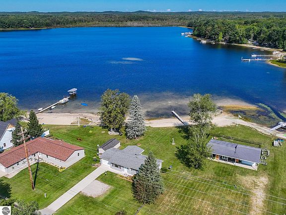 Enjoy lakefront living with 82 ft of frontage on beautiful Pleasant Lake! This charming 3BR/1.5BA home offers the perfect balance of comfort and modern updates. Step into the fully enclosed and insulated sunporch with sweeping views of the lake, ideal for relaxing bug-free. Many updates include: completely remodeled bathrooms, sunroom addition, newer mechanicals, concrete driveway & porch, and more, ensuring peace of mind for years to come. The large crawl space with a concrete floor offers excellent storage for all your water toys, kayaks, SUPs, and seasonal items. Pleasant Lake is a haven for outdoor enthusiasts, perfect for fishing, pontoon rides, kayaking, and swimming. With a large lakefront yard, you'll have plenty of space to entertain and soak in the natural beauty. Located just a short drive from Cadillac's amenities, this home provides the best of both worlds – serene lake life with the convenience of nearby shopping, dining, and entertainment. Don't miss out on this opportunity to own a piece of waterfront paradise!